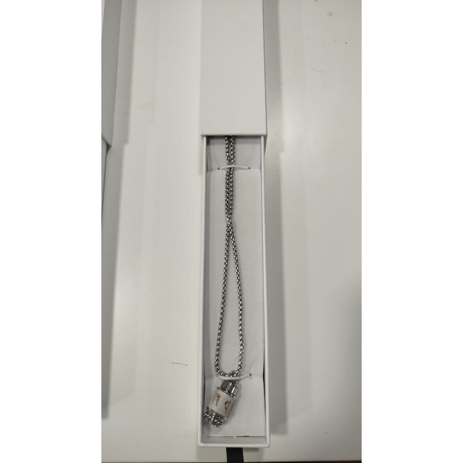 • Incluye cadena de acero inoxidable resistente y cómoda de llevar