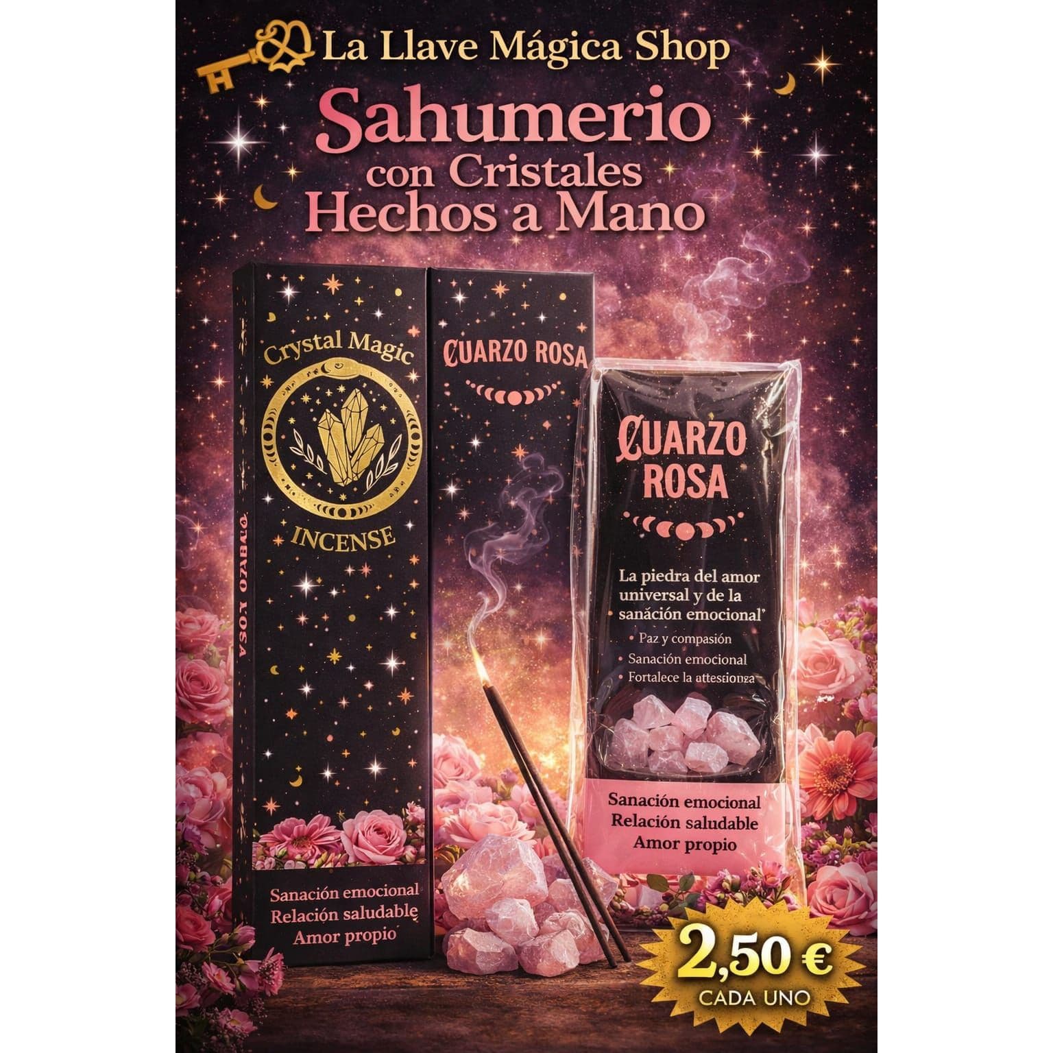 Sahumerio con Cristales Hechos a Mano - Cuarzo Rosa cantidad
