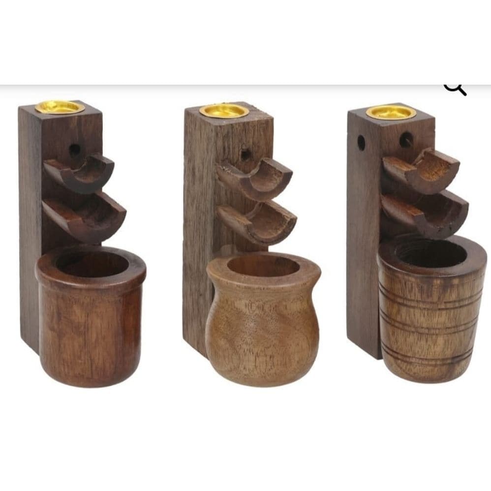 Para conos de reflujo. Quemador de incienso Jnana Surt en madera natural, con diseño tipo cascada que acompaña rituales de calma, limpieza energética y meditación. Ideal para crear atmósferas de presencia y silencio consciente.